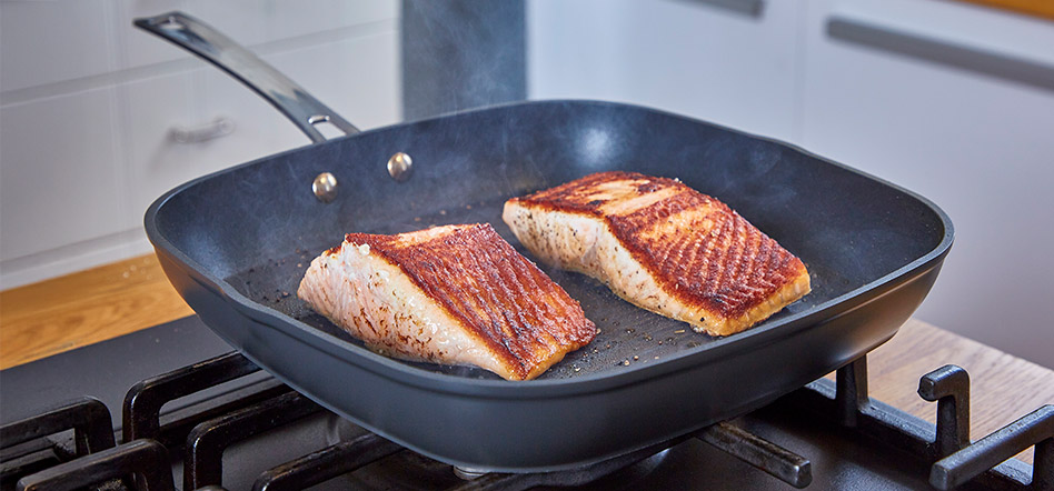 Marinated, Juicy Beef Souvlaki Grilled in a Non-Stick Grill Pan.
